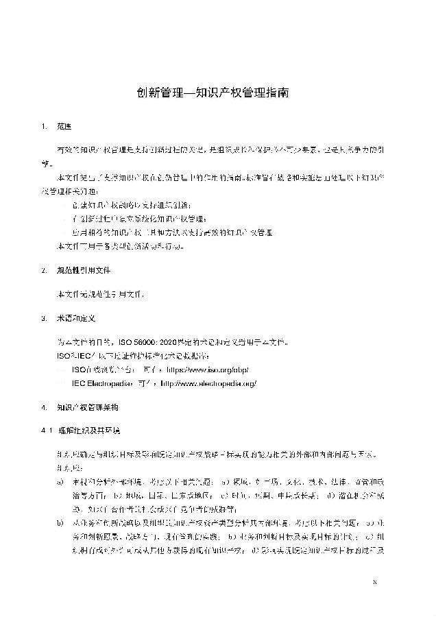 本标准等同采纳ISO 56005:2020,在结构体例的安排上遵循ISO/IEC导则对指南标准的结构和要求。