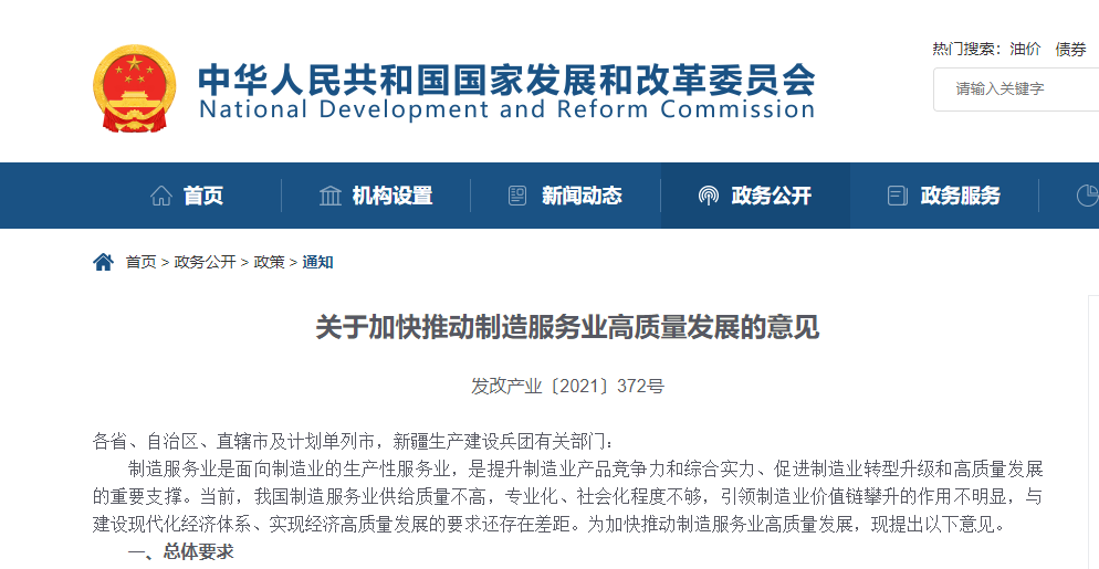 聚焦重点环节和领域,从6个方面加快推动制造服务业发展,以高质量的服务供给引领制造业转型升级和品质提升。