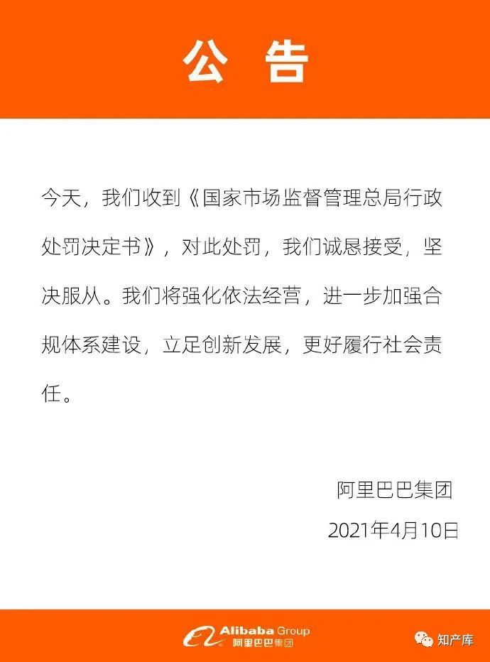 4月10日,市场监管总局依法对阿里巴巴集团控股有限公司在中国境内网络零售平台服务市场实施“二选一”垄断行为作出行政处罚: