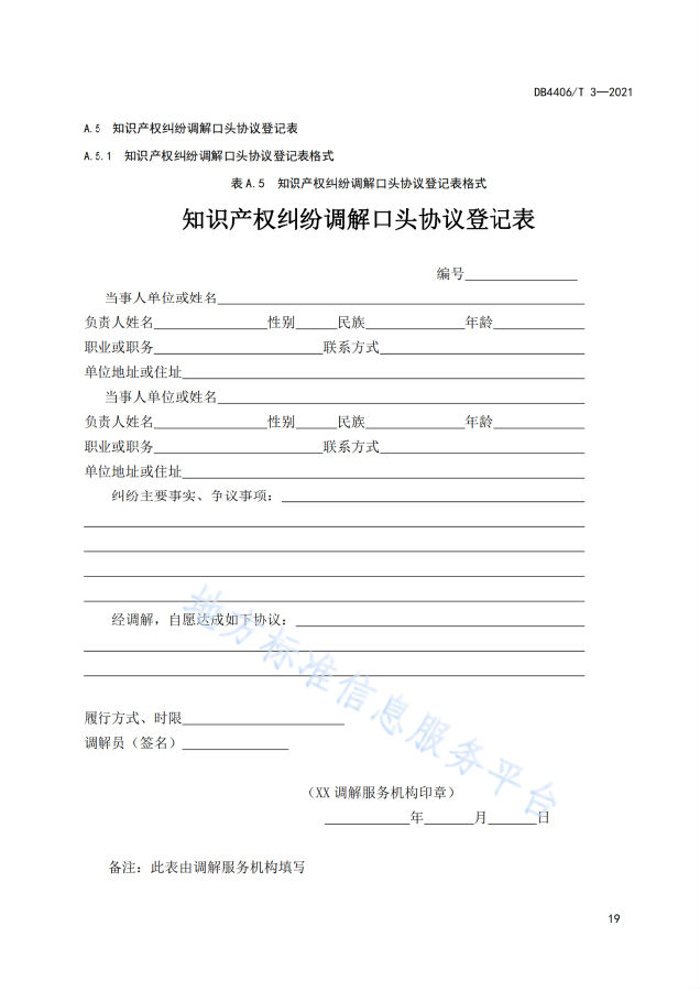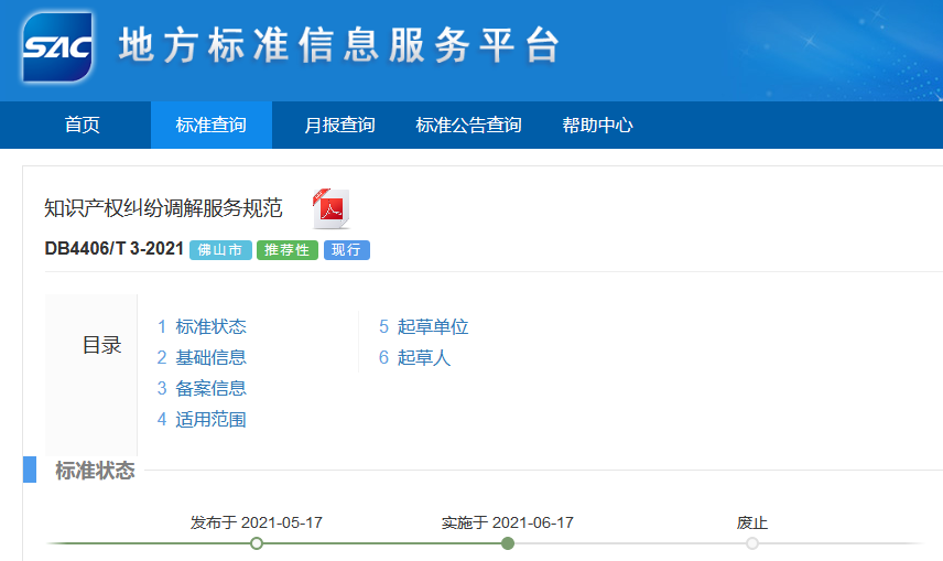 近日,地方标准信息服务平台发布《知识产权纠纷调解服务规范》。本文件为知识产权纠纷调解服务机构组织建设及服务管理提供依据,制定本规范的目的是为了提升知识产权纠纷调解相关服务能力,规范化调节管理与程序。