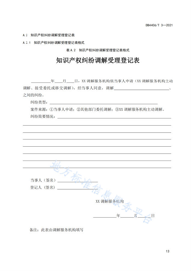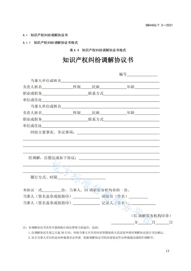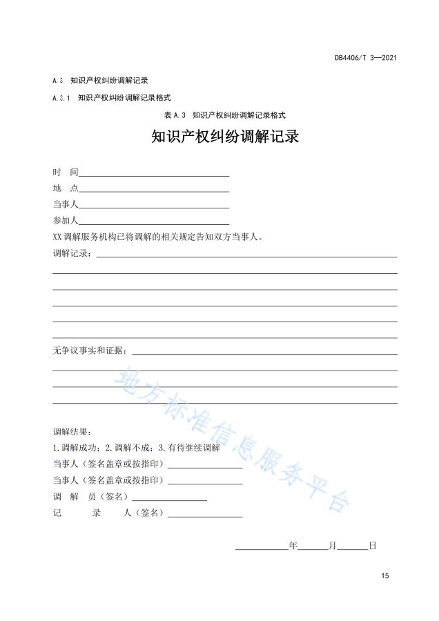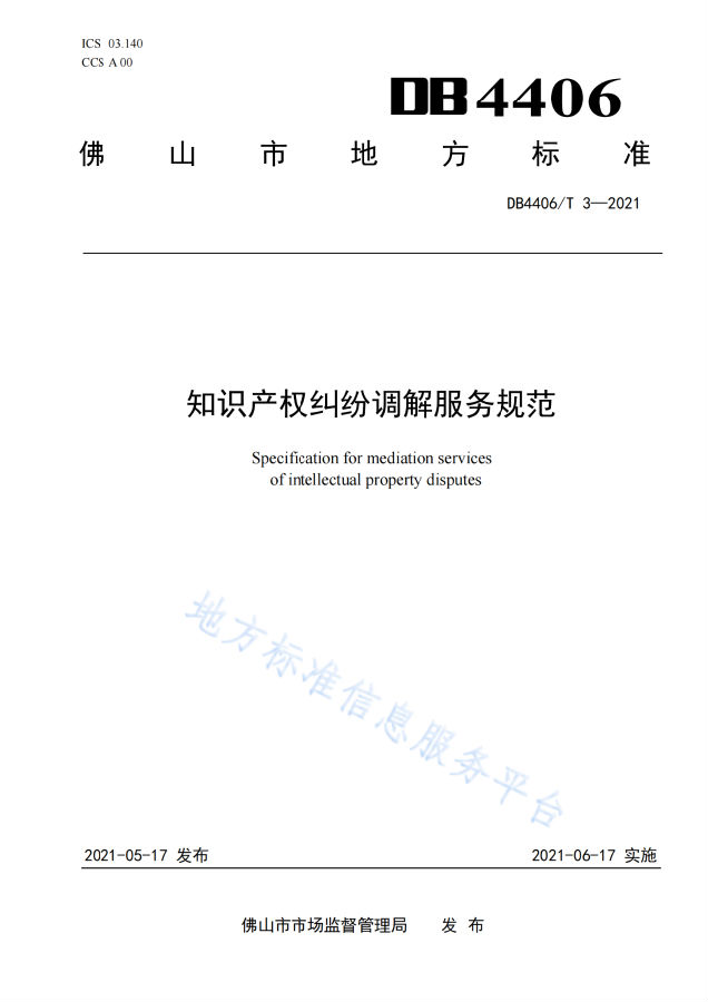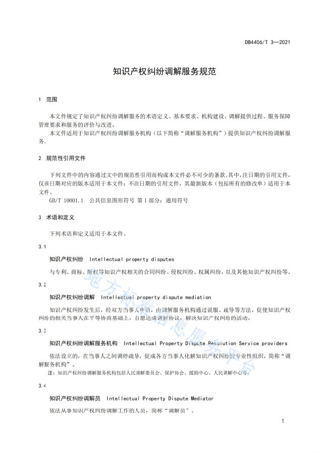 附《知识产权纠纷调解服务规范》全文:
