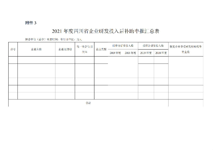 3.2021年度四川省企业研发投入后补助申报汇总表