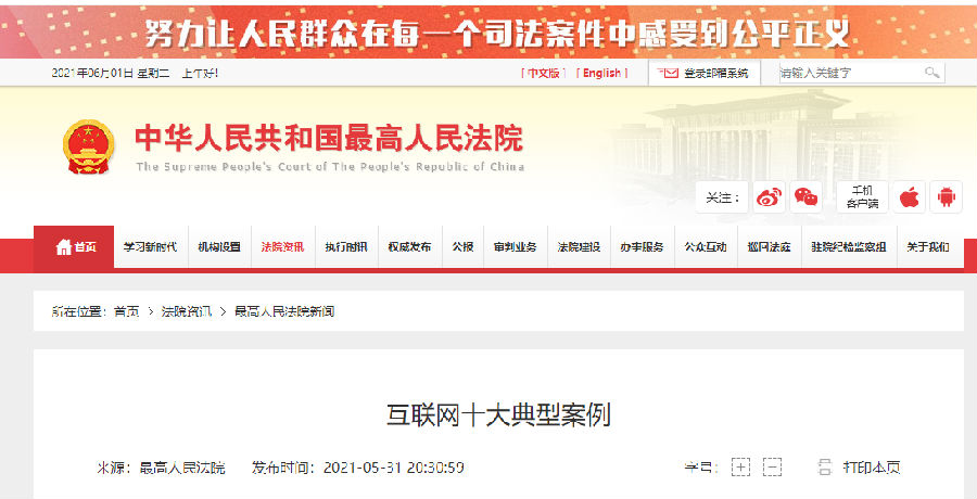 昨日,最高人民法院发布《互联网十大典型案例》,多个案例与知识产权相关: