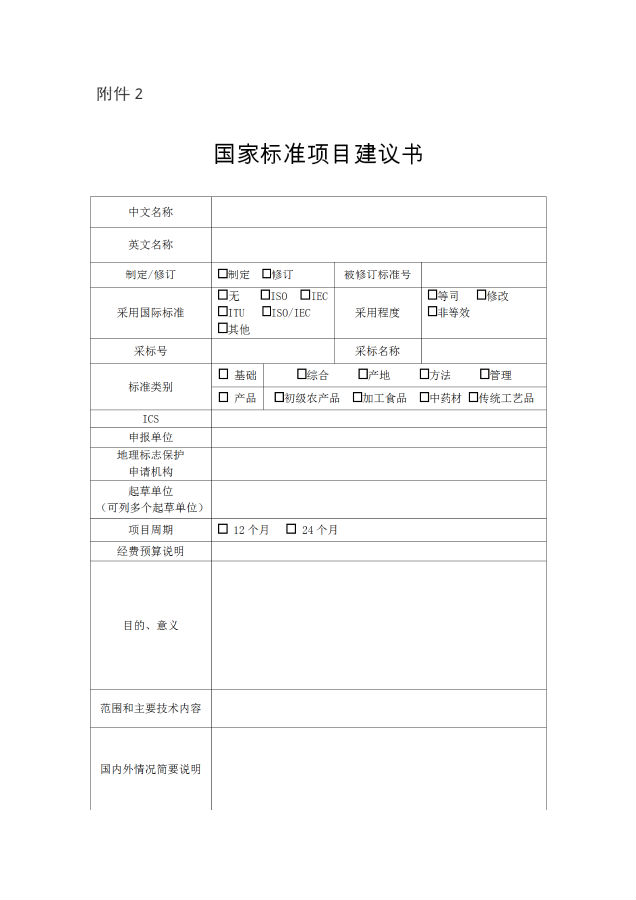 2.国家标准项目建议书