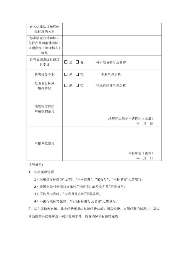 2.申报主体。申报单位为项目牵头起草单位,产品类国家标准制修订项目申报单位应与地理标志保护申请机构一致或经过地理标志保护申请机构同意。
