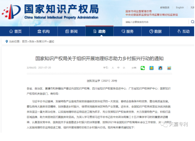 国家知识产权局关于组织开展地理标志助力乡村振兴行动的通知