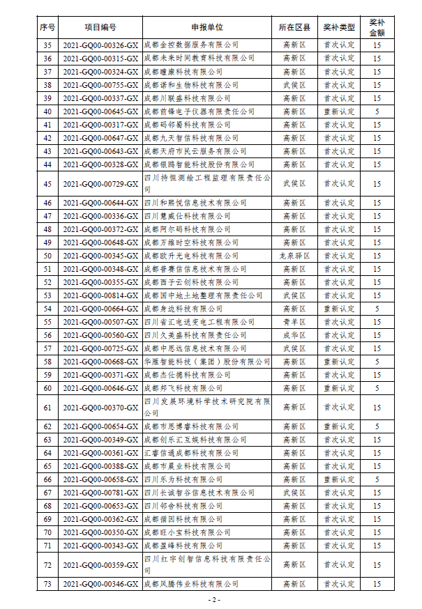 附件:2021年成都市第二批高新技术企业认定奖补拟立项项目公示名单
