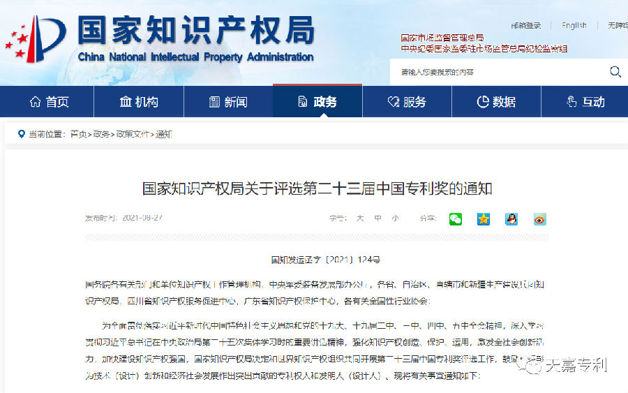 《中国专利奖评奖办法》《中国专利奖申报书(2021年修订版)》等请到国家知识产权局网站“中国专利奖”专栏下载(https://www.cnipa.gov.cn/col/col41/index.htm)。