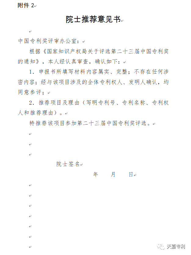 (1)院士推荐意见书1份(纸件,需院士签名,附院士证书复印件,格式见附件2);