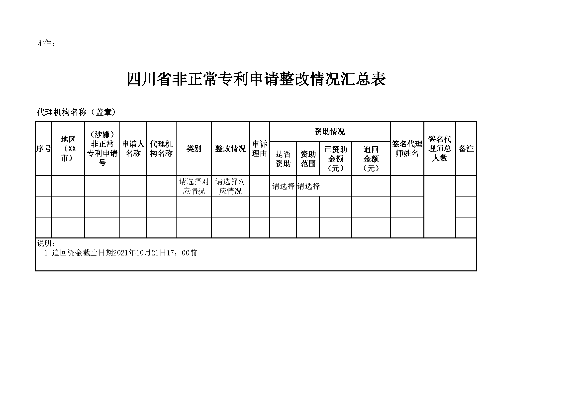 附件: 《四川省非正常专利申请整改情况汇总表》