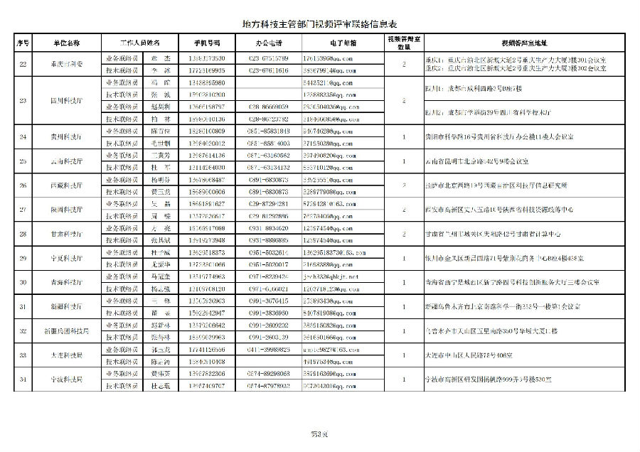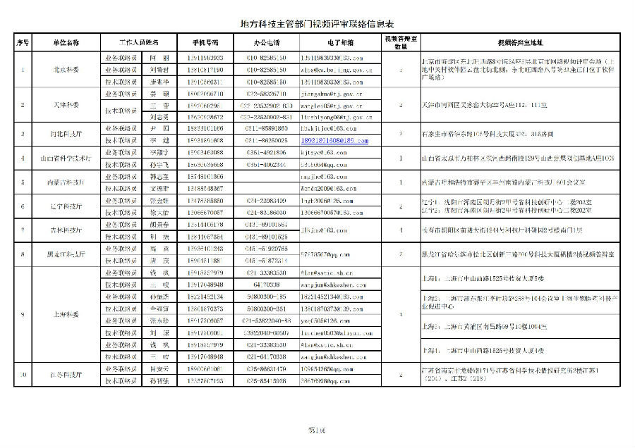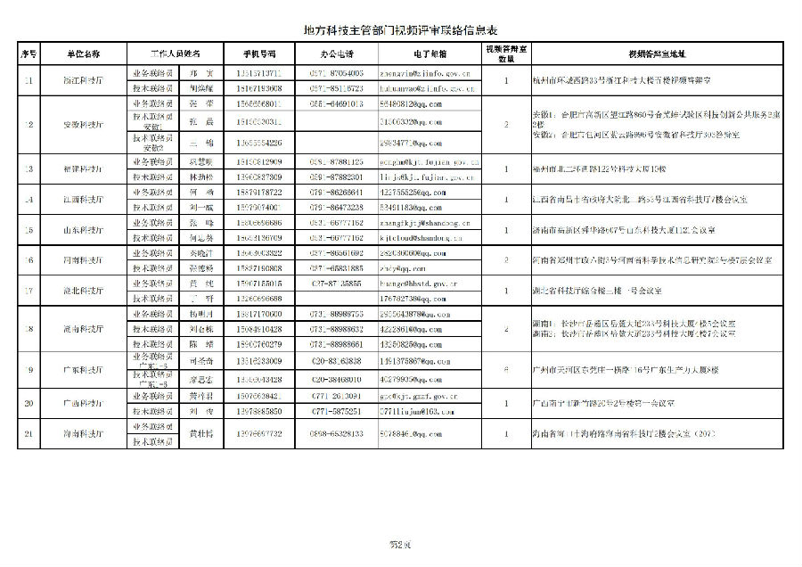 2. 国家重点研发计划2021年度视频答辩评审地方科技主管部门联系信息表