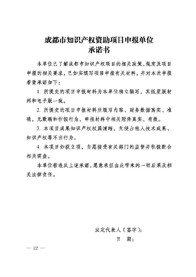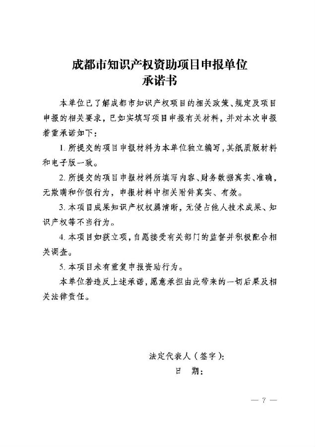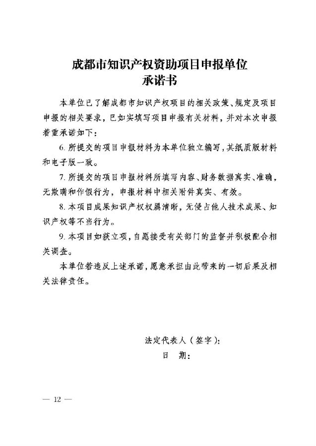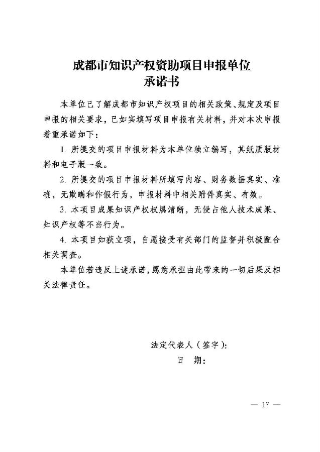 (三)在成都市行政区域内注册并具有独立法人资格的单位,且无不良社会信用记录,近三年未被国家知识产权局、省知识产权局因为违规代理受到行政处罚;