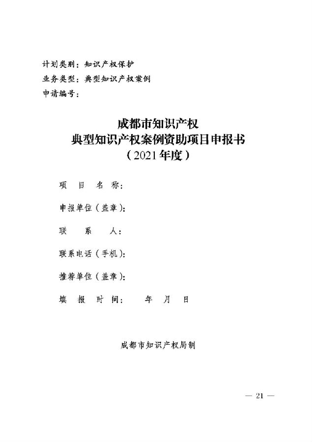 (三)区(市)县知识产权管理部门统一汇总辖区内项目申请,并于2021年10月30日前报送市知识产权局。