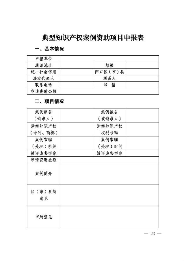 (一)《典型知识产权案例资助项目申报书》;