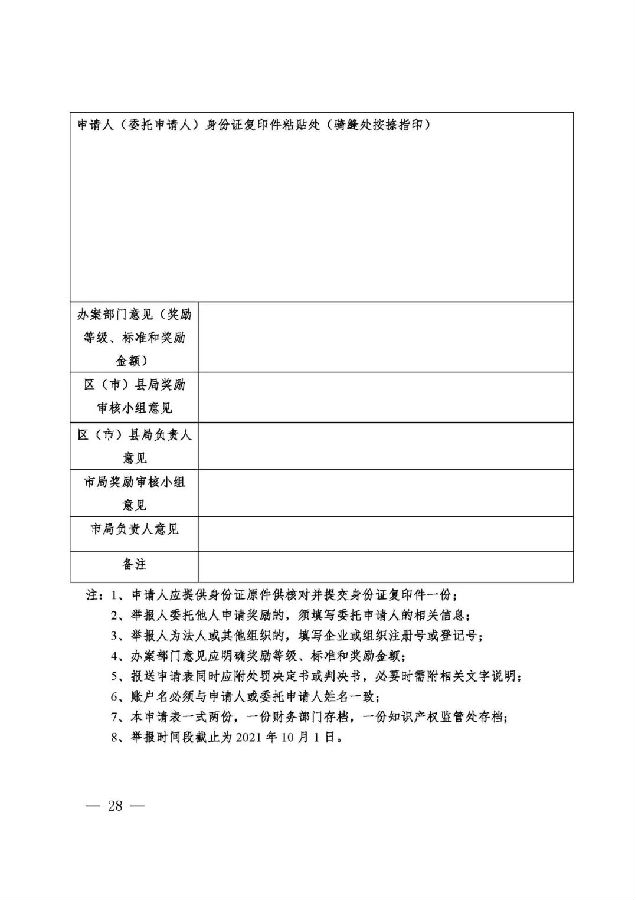 (一)按属地管理原则,奖励时间段为2020年11月10日至2021年10月1日,奖励申请人于2021年10月25日前按照奖励办法规定将奖励申请审核表报送办案部门,提出奖励申报申请,逾期不予受理。