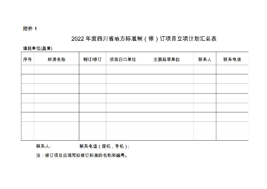 1.2022年度四川省地方标准制(修)订项目立项计划汇总表