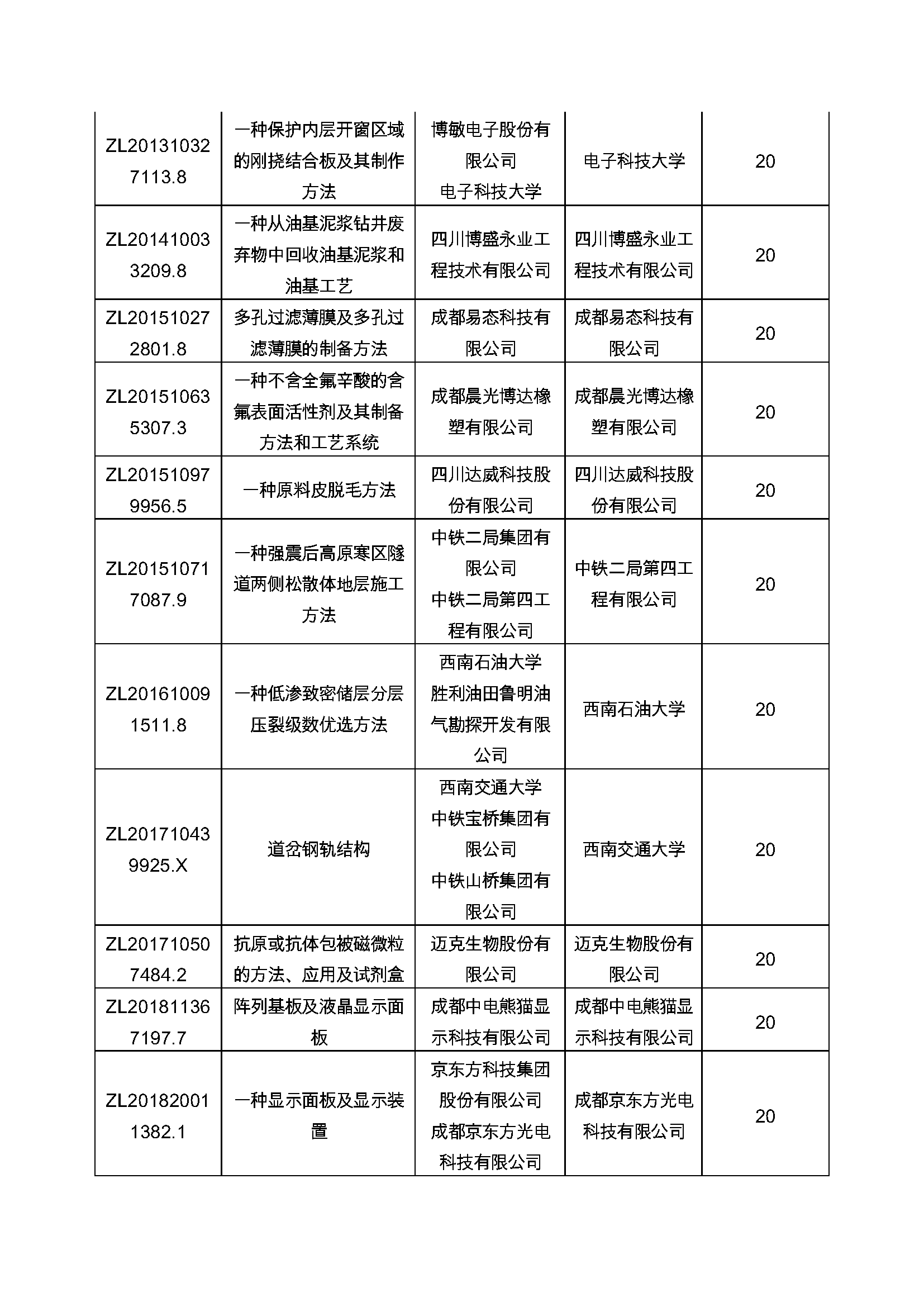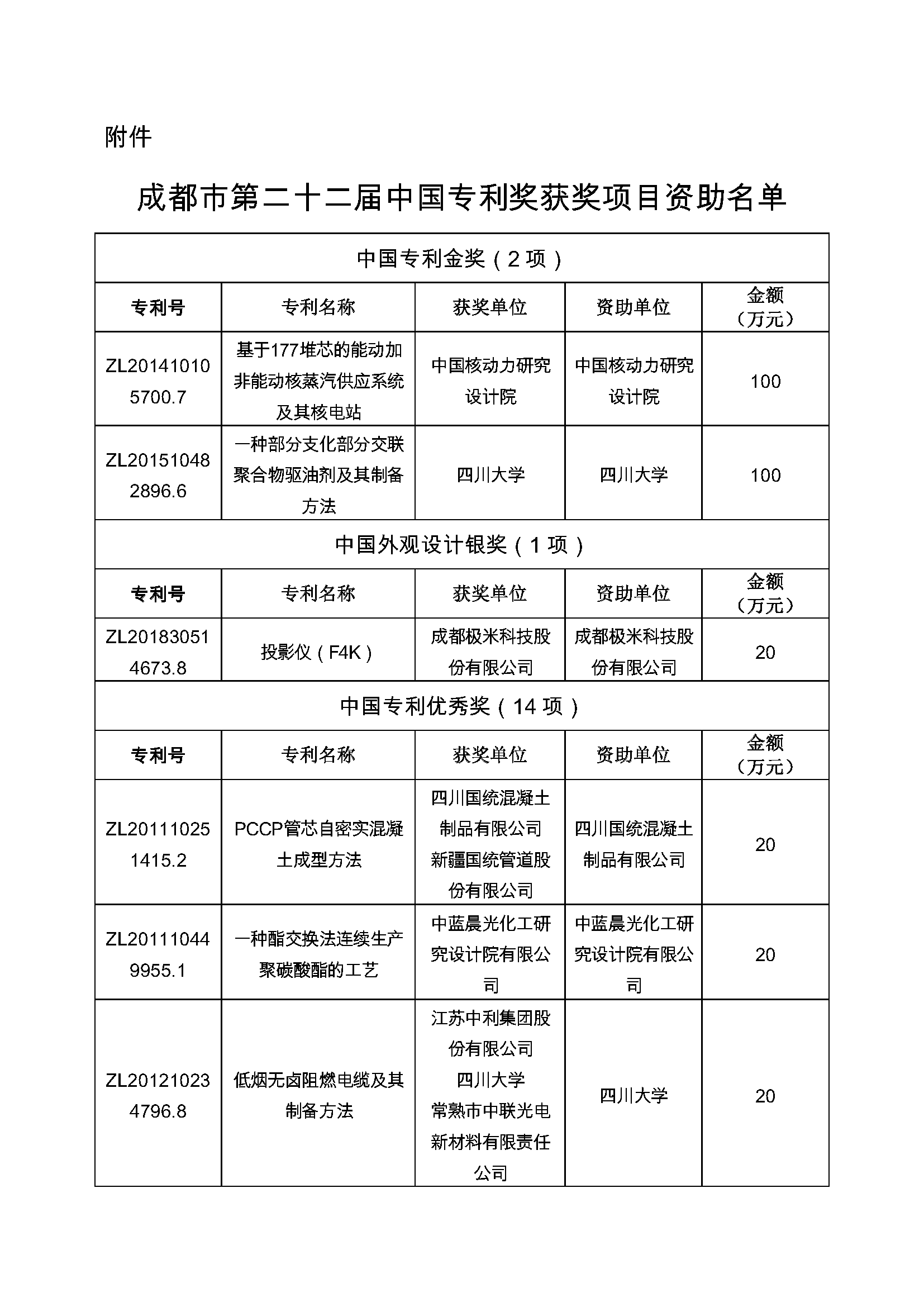 附件-成都市第二十二届中国专利奖获奖项目资助名单