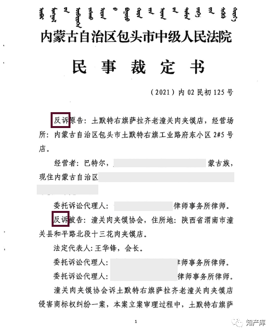 12月16日,包头中院就“潼关肉夹馍协会”维权后被维权反诉“恶意诉讼”案,