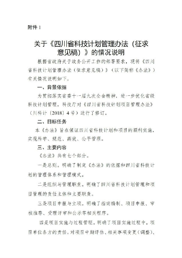 1.关于《四川省科技计划管理办法(征求意见稿)》的情况说明
