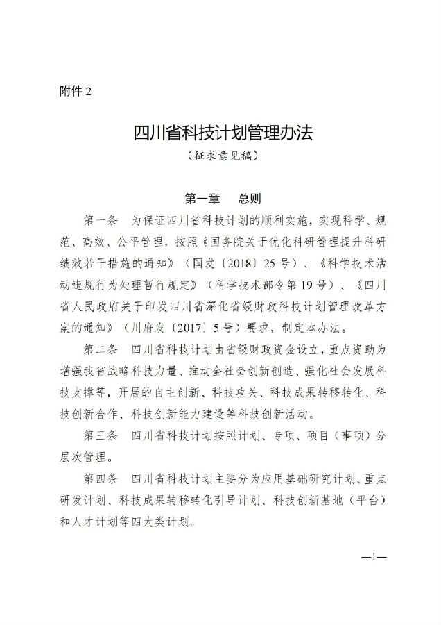 2.四川省科技计划管理办法(征求意见稿)