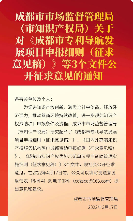 成都市知识产权优势示范单位项目资助管理实施细则(征求意见稿)