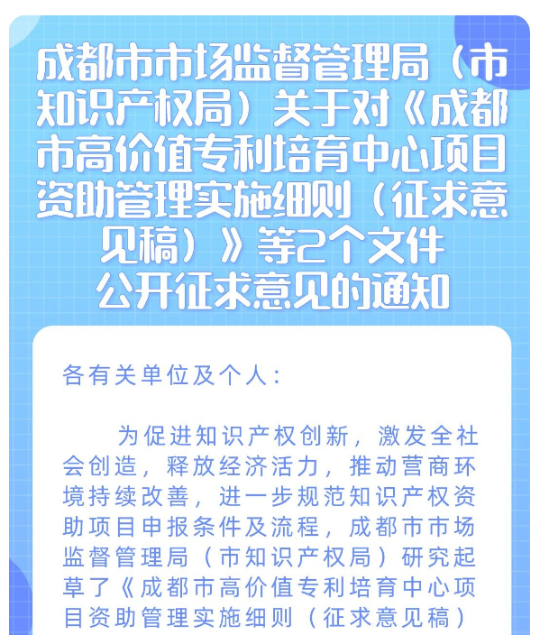 按照《成都市知识产权发展和保护专项资金管理办法》(成财制〔2020〕34号)和《成都市知识产权资助项目管理办法》(成市监规〔2022〕2号)要求实施。