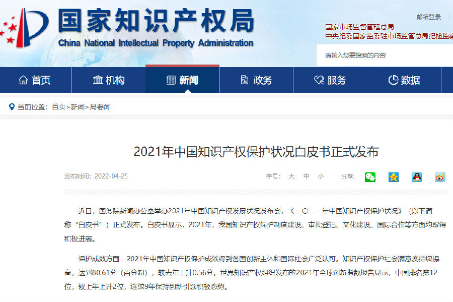 2021年中国知识产权保护状况白皮书正式发布