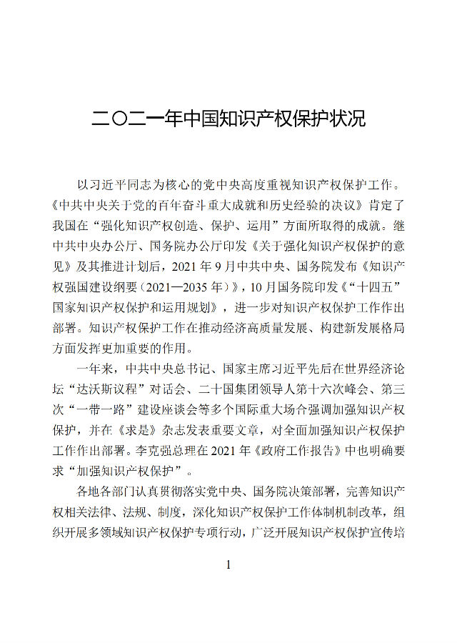 附件:《二〇二一年中国知识产权保护状况》