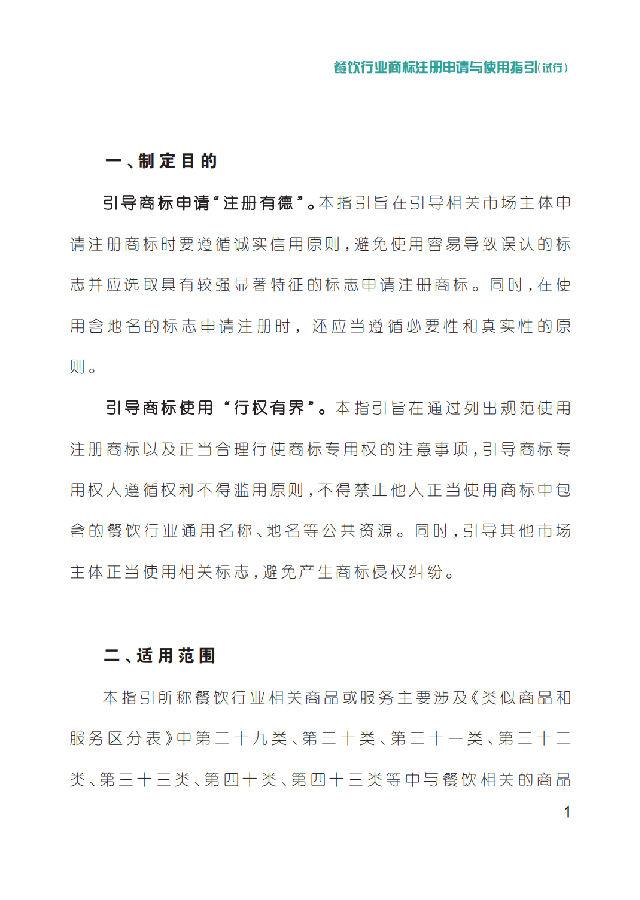 附件:餐饮行业商标注册申请与使用指引(试行)