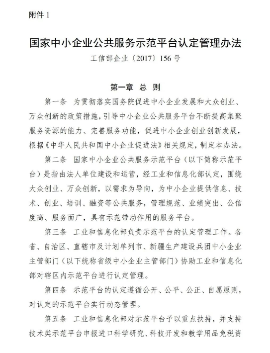 1.国家中小企业公共服务示范平台认定管理办法