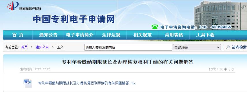专利年费缴纳期限延长及办理恢复权利手续的有关问题解答