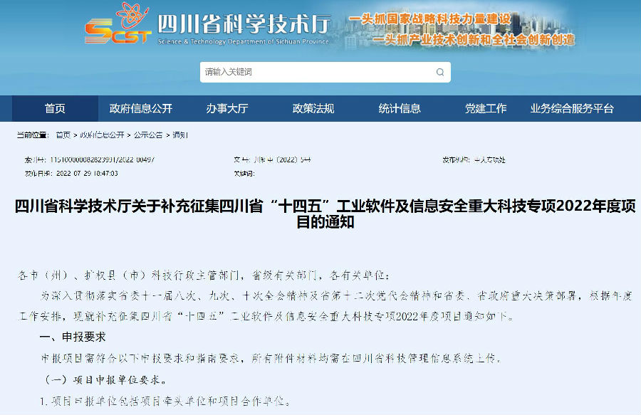 1.四川省“十四五”工业软件及信息安全重大科技专项补充征集2022年度项目申报指南