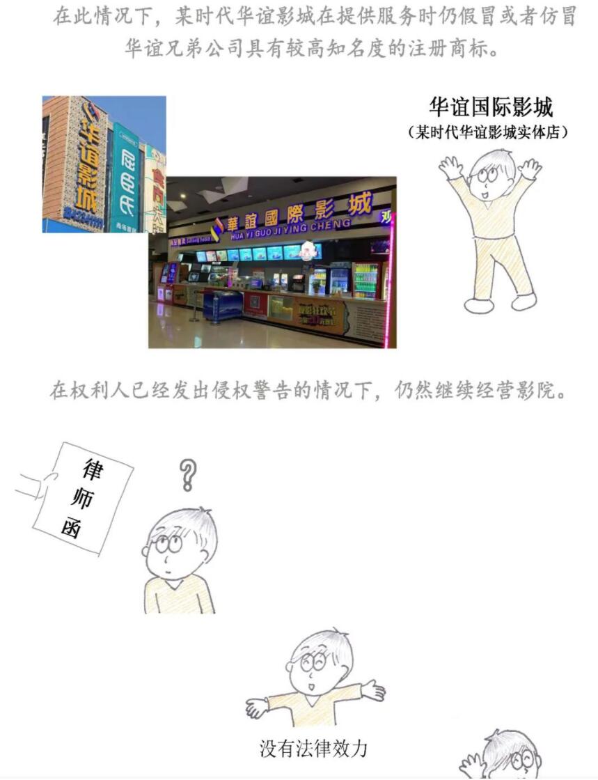华谊兄弟公司成立于2004年,在第41类电影制作、电影放映等服务上申请注册了“华谊兄弟”“华谊”等商标。自2010年6月起,华谊兄弟公司在各大城市开办影院。2014年,“华谊兄弟”商标在第41类电影制作、节目制作服务类别上被认定为驰名商标。某时代华谊影城系个体工商户,成立于2017年12月。