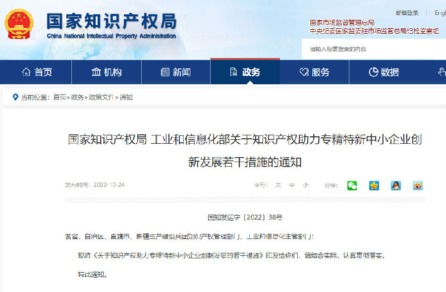 关于知识产权助力专精特新中小企业创新发展的若干措施