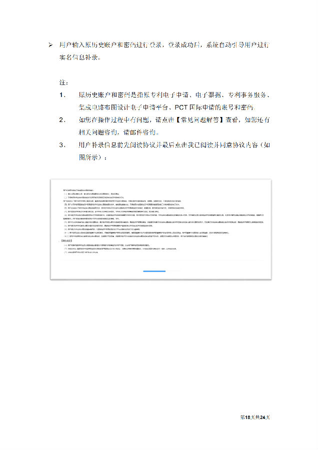 专利业务办理系统上线后,只有按要求完善信息的用户才能登录并使用专利 业务办理系统,办理国家专利申请、PCT专利申请、专利缴费、专利事务服务等业务。用户完善信息前,不能在专利业务办理系统提交文件、接收通知书或者办理其他业务。