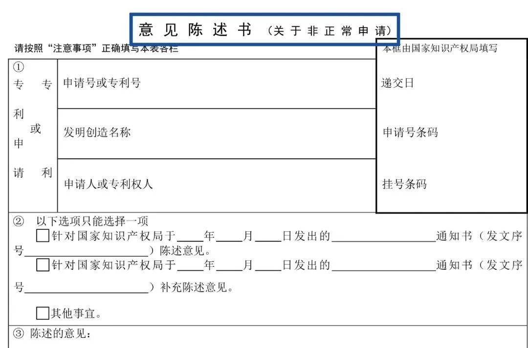【通知全文】国知局2023年1月启用“非正常专利申请”意见陈述书!