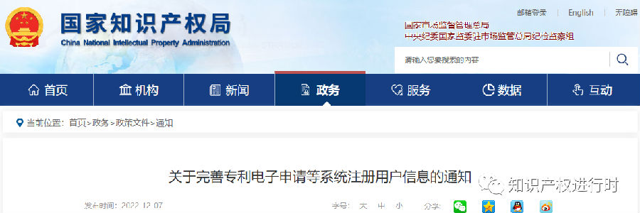 2023年1月“专利业务办理系统”上线!用户未按要求完善信息前,不能办理国家专利申请、专利缴费等业务