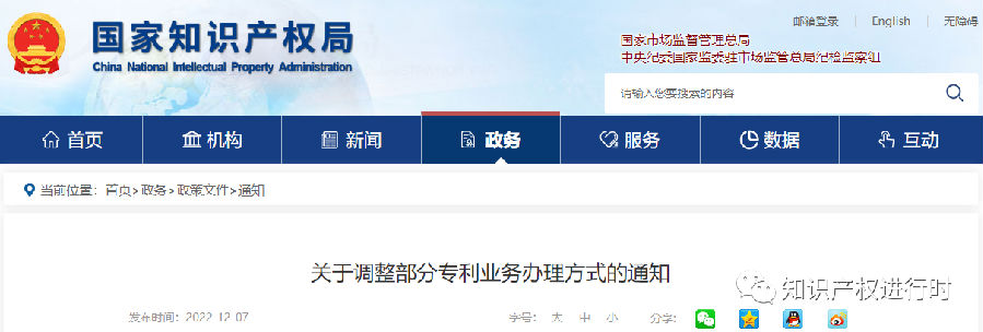 【通知全文】《关于调整部分专利业务办理方式的通知》
