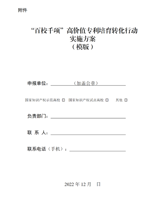 日前,教育部办公厅 国家知识产权局办公室 科技部办公厅关于组织开展“百校千项”高价值专利培育转化行动的通知: