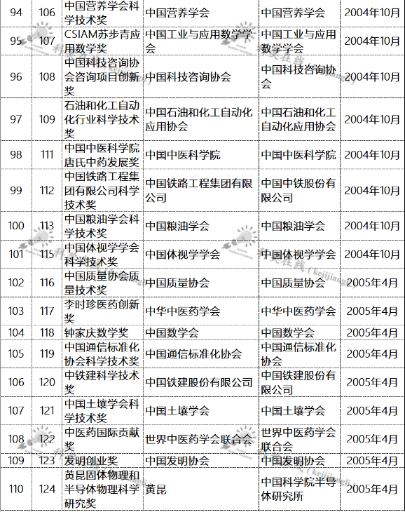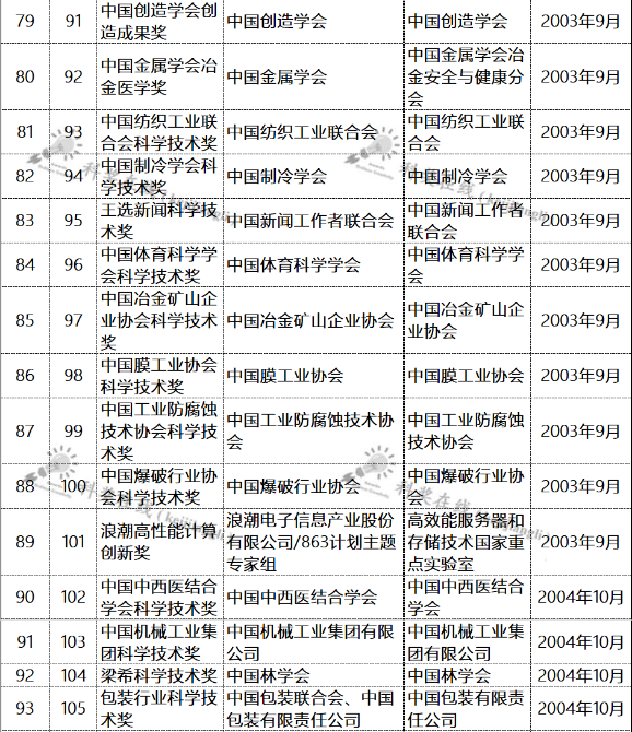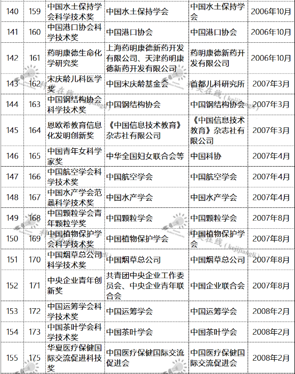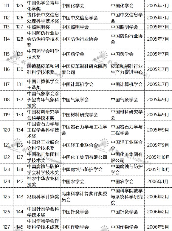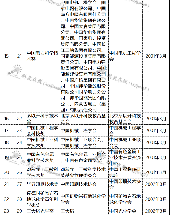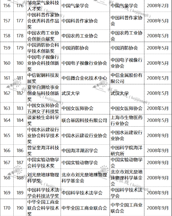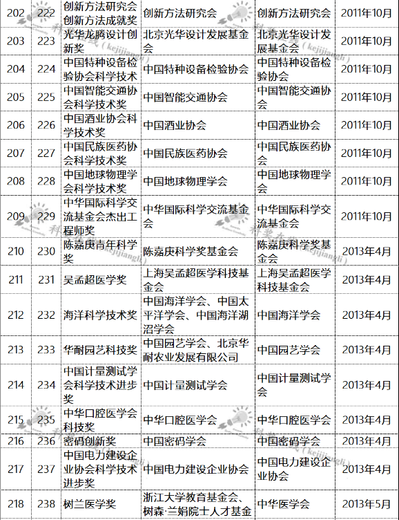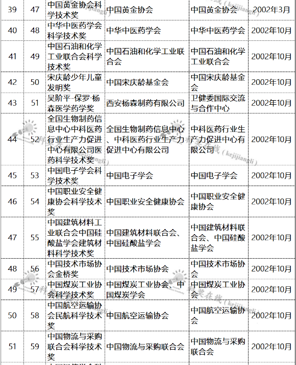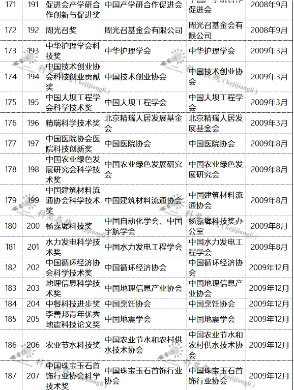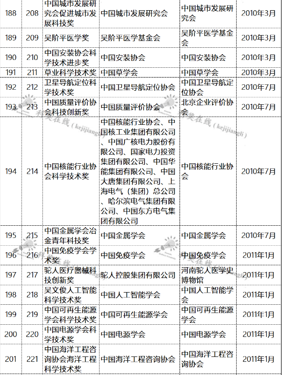 主要由国家级学会、协会、社会组织设立,某些情况下可等同于省部级奖励,部分设奖单位具备国家科学技术奖提名资格。