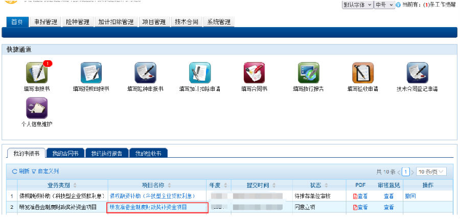 图1 项目负责人登录系统后查看项目示意图