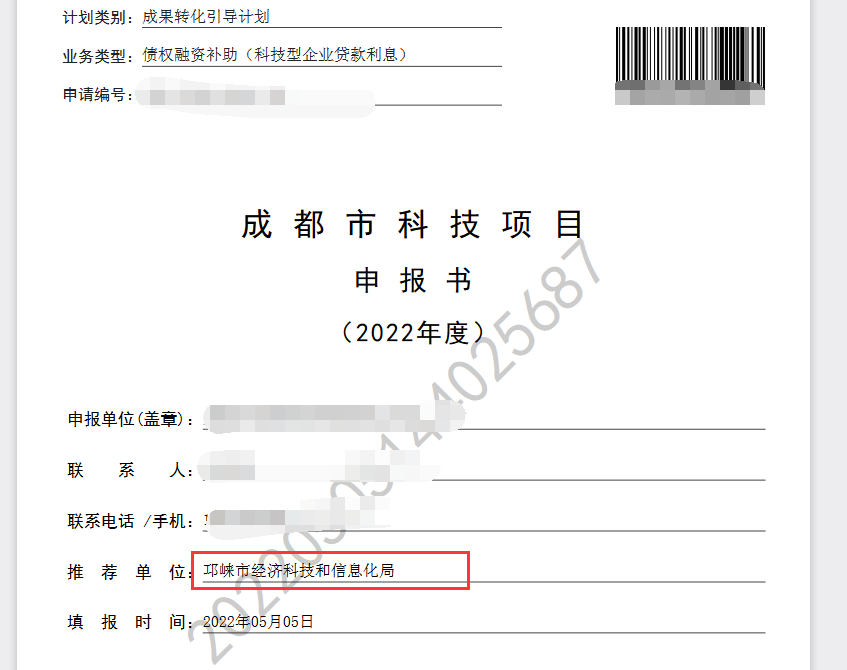 2023年成都市提前下达科技项目须将申报书及附件材料打印一式一份并装订,由项目负责人、承担单位和推荐单位签章后于2023年3月13日(星期一)17:00前提交至市政务服务中心科技局窗口。