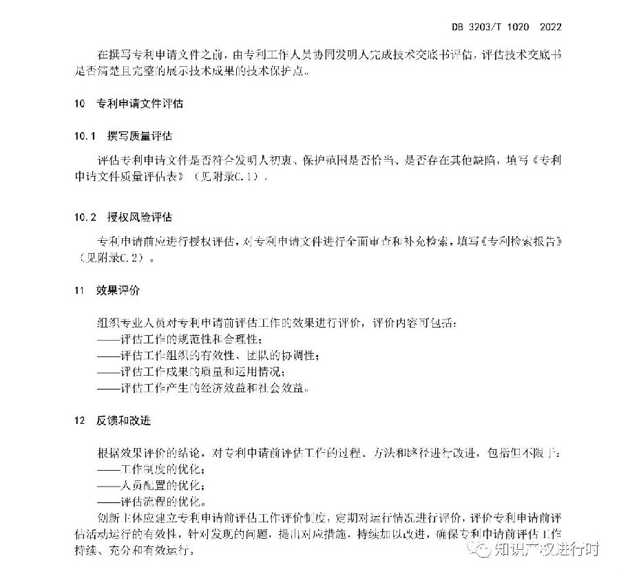 《专利申请前评估工作规范》规定了专利申请前评估工作的工作原则、工作流程、工作条件以及专利战略布局评估、技术成果评估、技术交底书评估、专利申请文件评估、效果评价、反馈与改进的工作要求。适用于企业、高等学校、科研组织等创新主体开展专利申请前评估的工作。