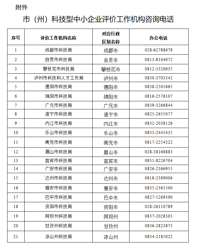 附件:市(州)科技型中小企业评价工作机构咨询电话