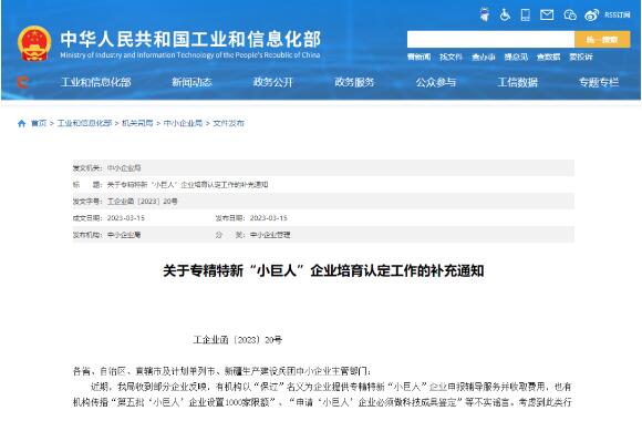 近期,我局收到部分企业反映,有机构以“保过”名义为企业提供专精特新“小巨人”企业申报辅导服务并收取费用,也有机构传播“第五批‘小巨人’企业设置1000家限额”、“申请‘小巨人’企业必须做科技成果鉴定”等不实谣言。考虑到此类行为对专精特新培育工作造成不良社会影响,现将有关事项补充通知如下: