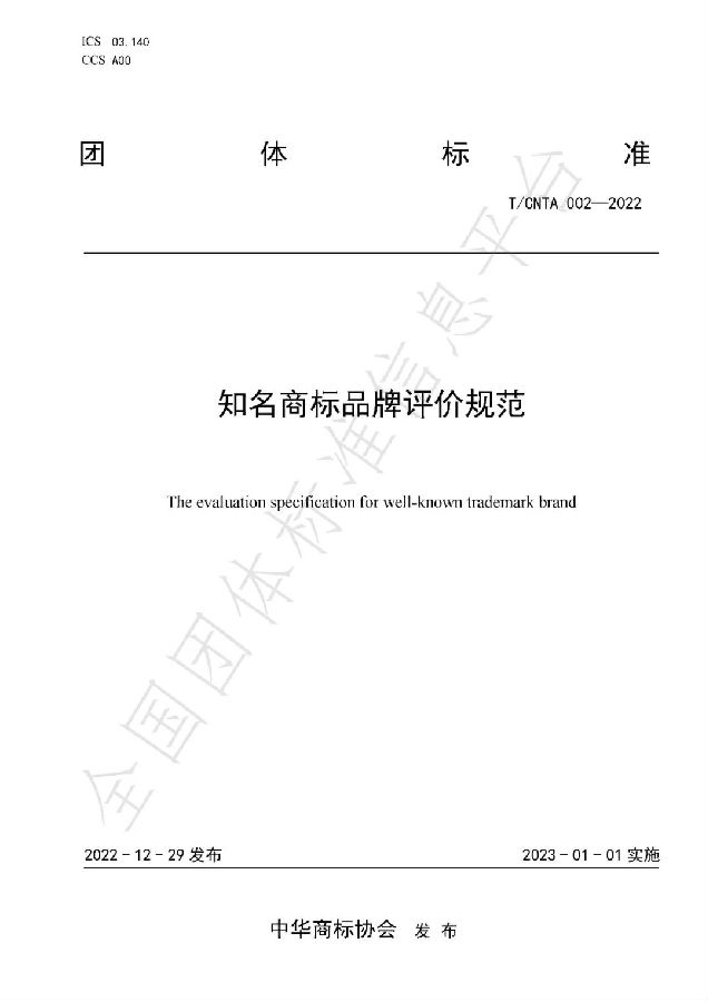 “3月22日,由中华商标协会联合中华全国专利代理师协会等10余家单位共同起草制定的《知名商标品牌评价规范》(团体标准)在京发布,该标准为首个全国性的知名商标品牌团体标准。”