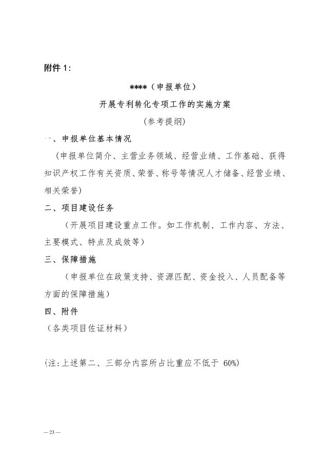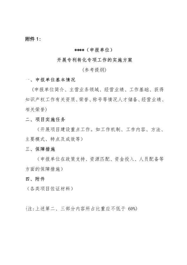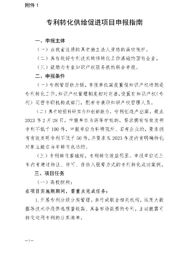 附件: 1.《专利转化供给促进项目申报指南》