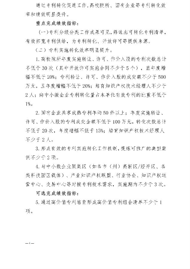 (一)专利转化供给促进项目:支持高等学校、科研机构、国有企业拓宽专利技术供给渠道。通过挖掘专利技术供给主体、开展专利分级分类管理、专利导航、专利开放许可、高价值专利培育等形式激发专利转化活力。