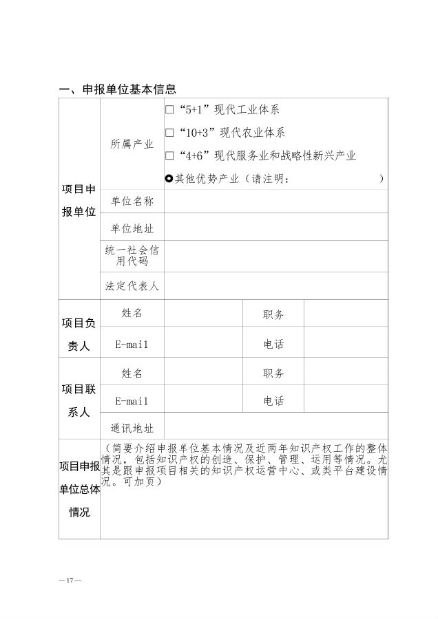 (三)项目申报资料。申报单位按照项目申报指南的要求填写规定格式的申报材料,相关附件在申请时必须同时提交。申报材料请精炼简洁,勿提交与此项目申报无关的内容及附件。