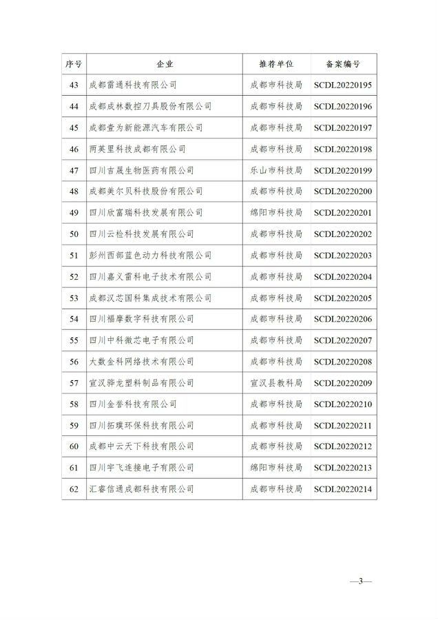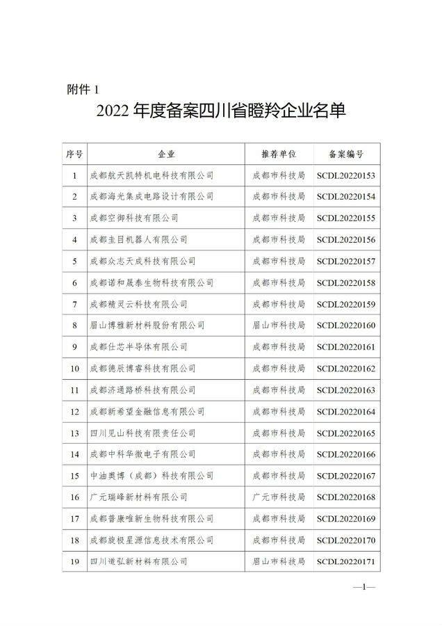 根据《四川省瞪羚企业培育行动实施方案(2019-2022)》(川科高﹝2019﹞20号),四川省科学技术厅(以下简称“科技厅”)组织开展了2022年度四川省瞪羚企业备案评审工作,62家企业备案为四川省瞪羚企业,为支持企业提升创新能力、增强核心竞争力和促进企业加快创新发展,科技厅采取后补助支持这批企业,现就开展瞪羚企业后补助申领表填报推荐工作,有关事项通知如下: